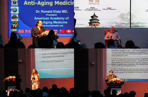 圖解:美國抗衰老醫學科學院主席羅納德。科萊茲博士、諾貝爾獎獲得者、幽門螺桿菌的發現者——澳大利亞病理學家羅賓。沃倫博士、美國功能醫學權威人士安妮特。庫茲.席佩爾,及轉化醫學、健康管理、心血管、內分泌、消化等國內外著名醫學專家,報告了國內外健康管理的最新理論和技術進展。